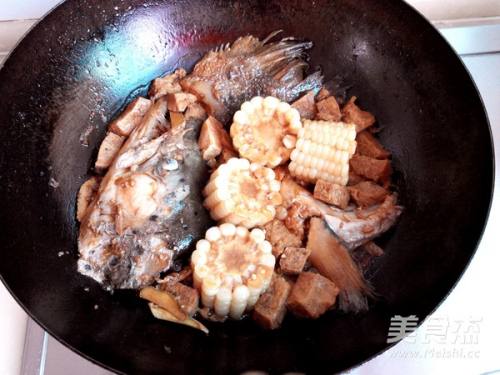 三文鱼和玉米的营养价值都很高,将玉米和鱼一起炖味道更是独特呢!