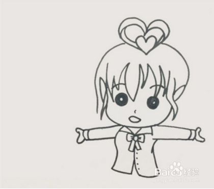 首先画出王默的发型轮廓,画出头上的爱心发饰后,将脸部线条与五官画出来。