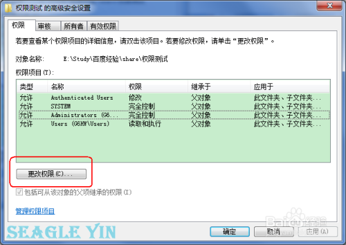 在弹出的窗口中 权限 选项卡中点击 更改权限。