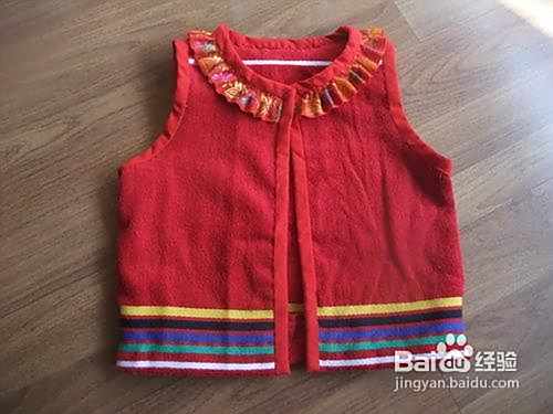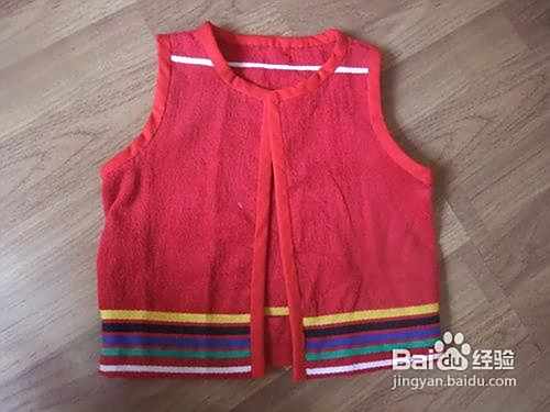 给毛巾马甲包边,要尽量用长一点的,接口位置尽量放在后面看不到的地方。