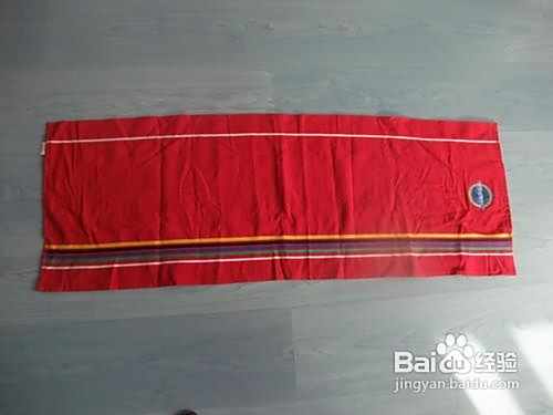 准备一条毛巾,宽度要大与35厘米,长度要大于65厘米。