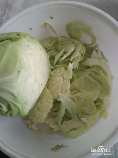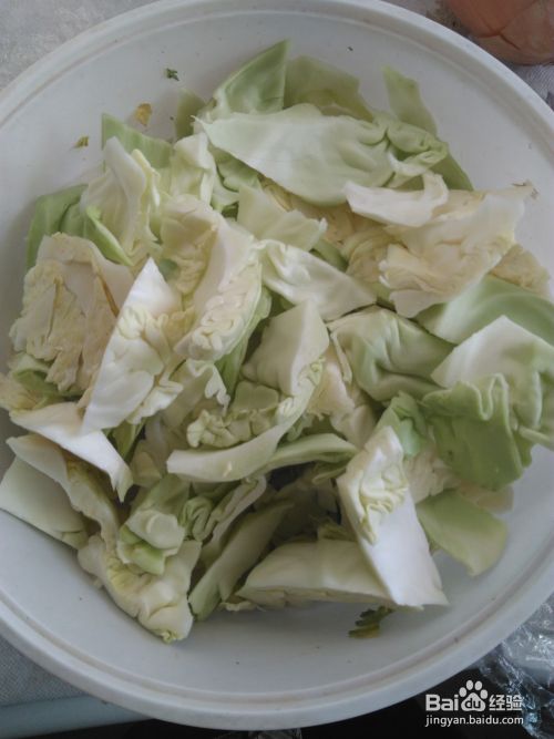 把买来的圆白菜先剥掉一层皮,然后直接用刀切成小条或小块。