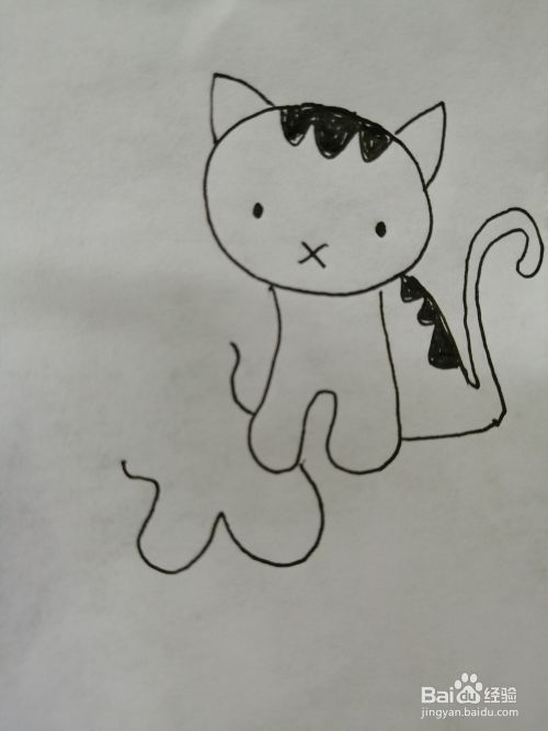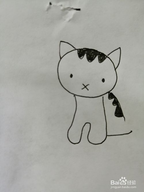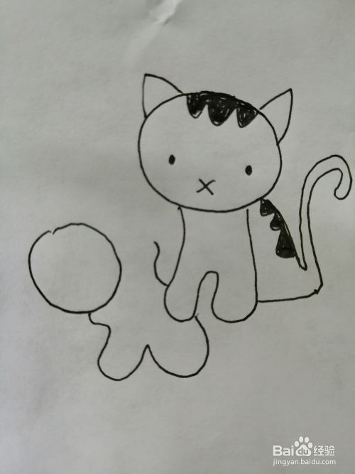 第五步,然后把可爱的小猫咪的身体部分和头部背上的花纹画出来。