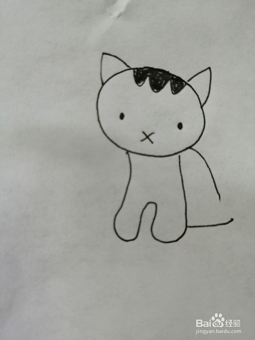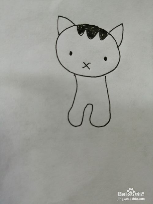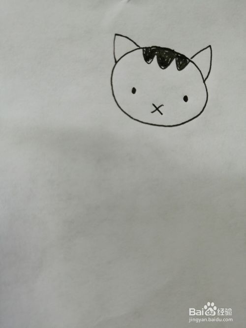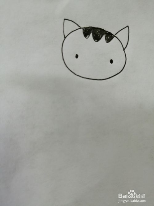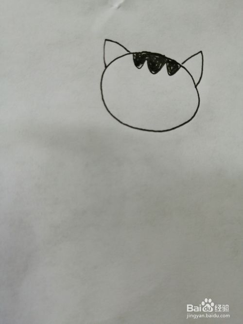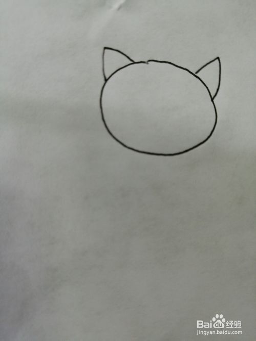 第二步,接着在可爱的小猫咪的头部上面画出两个小耳朵。