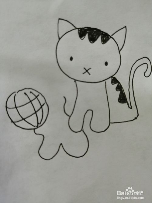 第七步,最后把可爱的小猫咪的线上面画出一个小毛球。玩球的小猫咪就画好了。