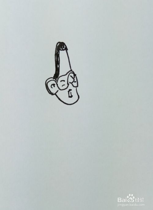 在白纸上用线条和曲线画出小头爸爸的头部轮廓,并画出他的五官和眼镜。