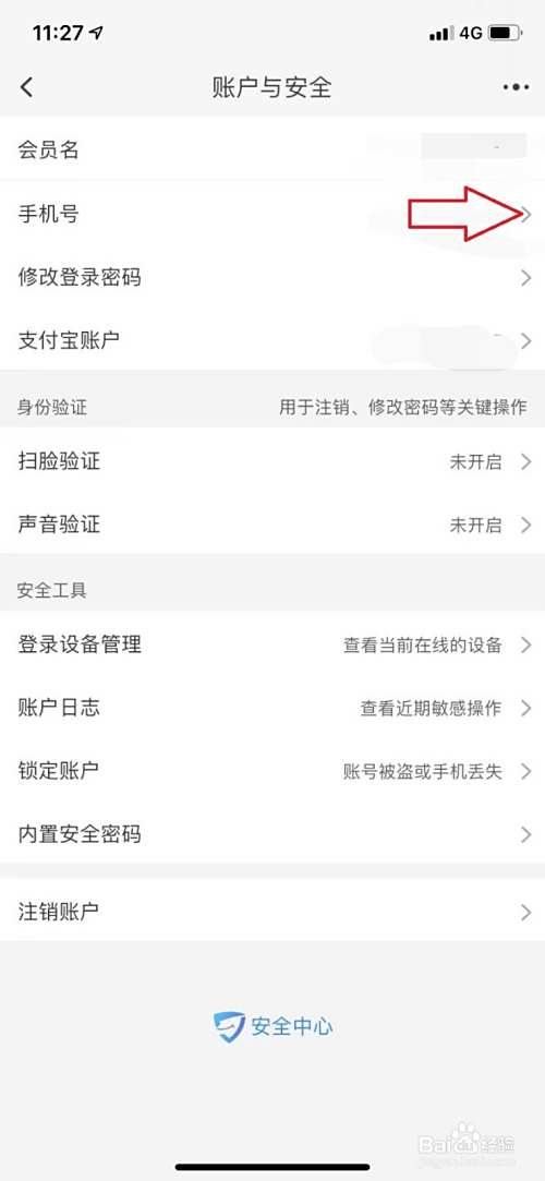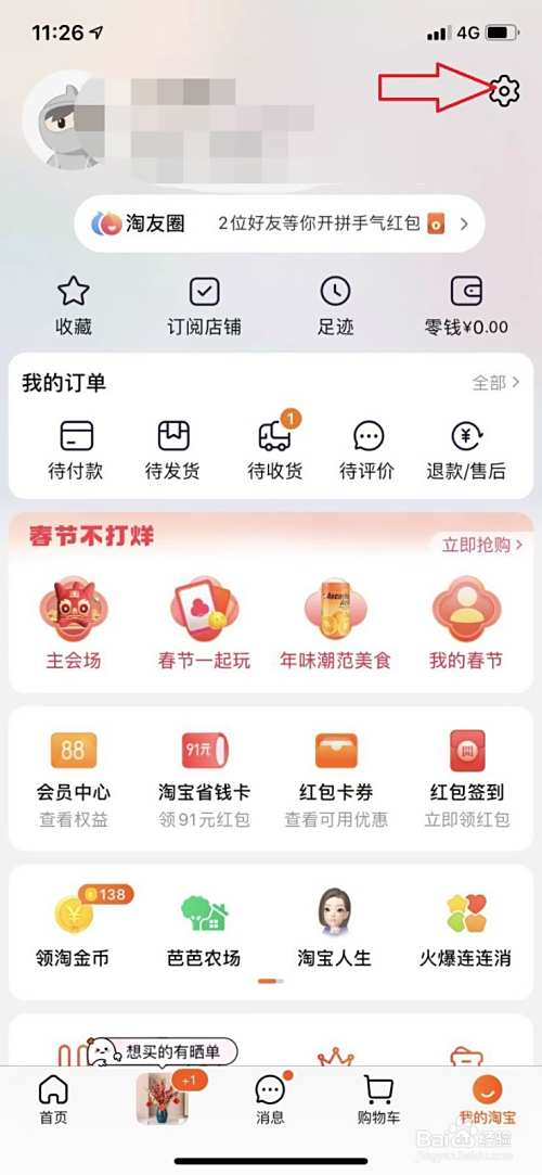 在个人中心界面选择右上角设置,在设置内选择账户与安全