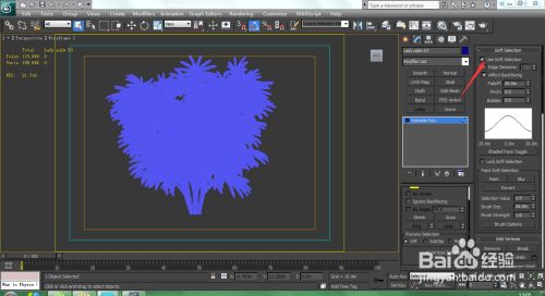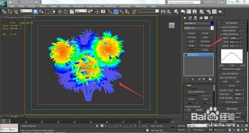 五:选择树叶部分的点,可以选一个点或者是多个点,调整Affect Backfacing下的第一个选项衰减Falloff,适当点就可以,不要给得太大,看场景中树的范围不能到树脂枝干地方。