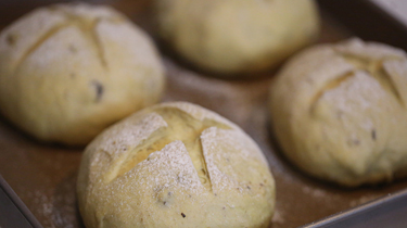 取出,230预热烤箱,给面团喷水、筛粉、割口,转成215度烤25分钟出炉