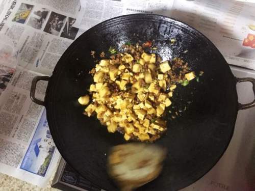 放入豆腐翻炒1分钟,加鸡精、胡椒粉炒匀出锅。