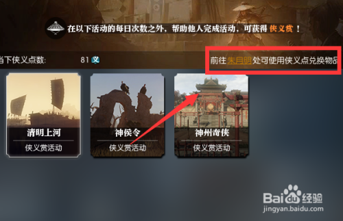 这里的任务做完都是可以获得侠义点的,除此之外,还可以帮助其他玩家完成活动,也能获得侠义点。