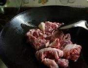倒入羊肉翻炒;