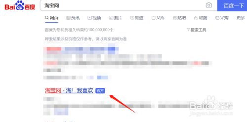 打开浏览器,百度搜索淘宝网,点击图中连接。