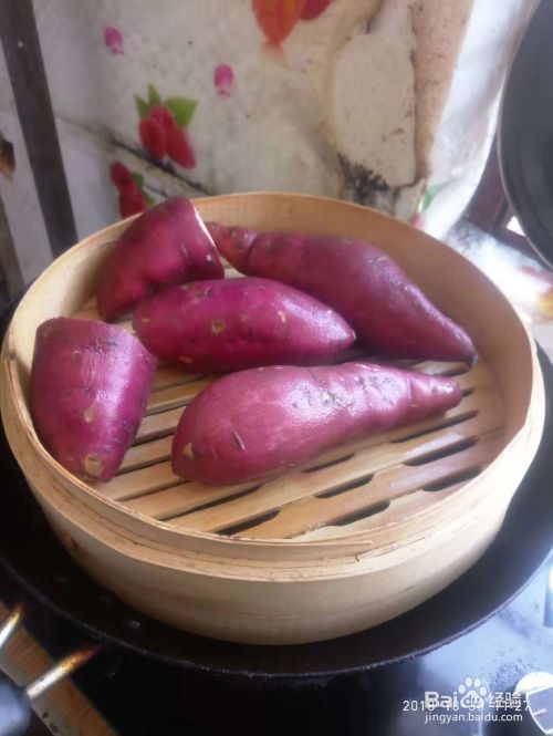 将红薯洗净,放在蒸笼上蒸熟。(这次买的是紫色皮黄心的红薯)