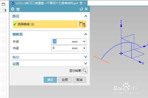 双击修改尺寸:半径R70,端点距离纵轴50,