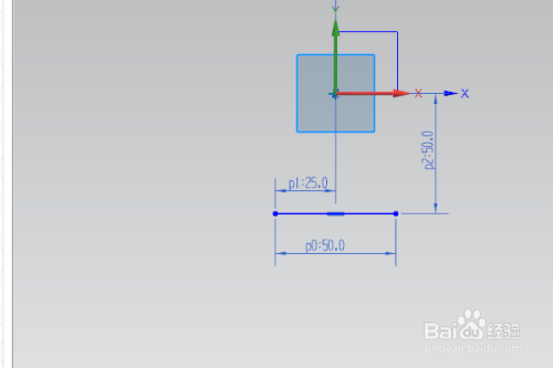 双击修改尺寸:长50,左端点距离纵轴25,距离横轴50,