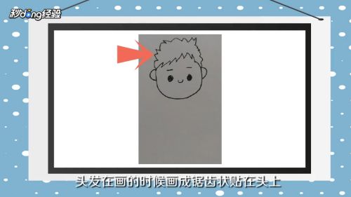 2再画出短发,头发在画的时候成锯齿状贴在头上,在脸的两边中间偏上位置画出两个耳朵。