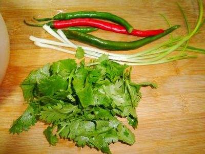香菜一定在最后出锅前再放,我就放早了,所以看不见香菜了,我又撒了些小香葱。