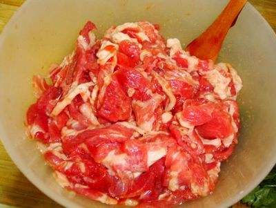 3、用调料A将羊肉腌制1小时(腌制时放少许食用油);