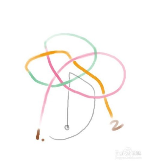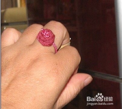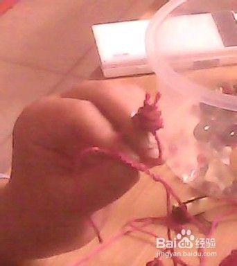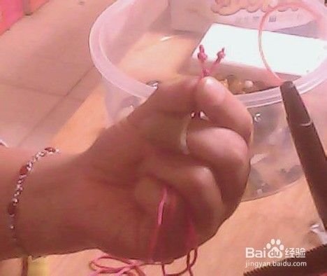 我用了粉色绳编两个盘扣儿疙瘩,不带每一个都说一遍的,这也太罗嗦了,盘扣儿编法搜我的另一经验:(简单明了的方法:盘扣蒜疙瘩)。留一高一低然后下面编三个玉米结,切,我感觉叫柱子结的好,结法如图二简单一句话:一个压一个。