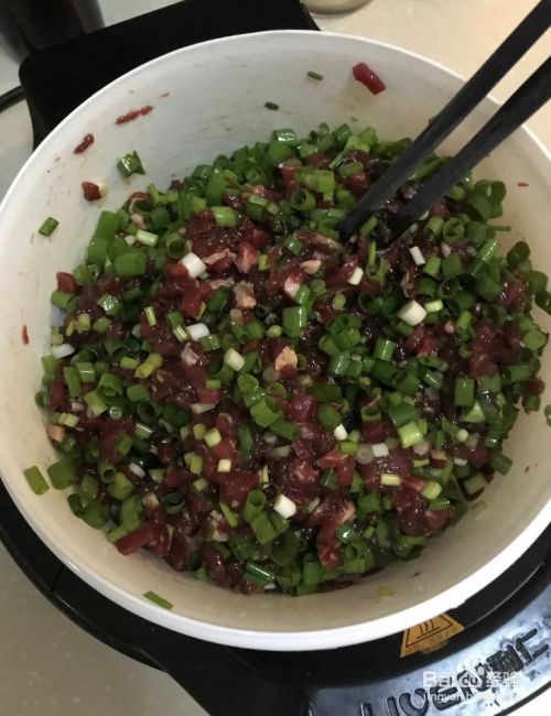 牛肉馅加入生抽,老抽,料酒,香油,盐,小葱,搅拌上劲