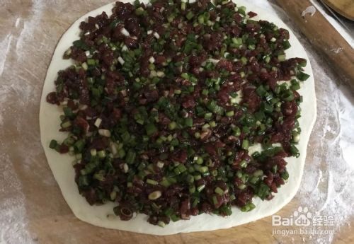 铺上牛肉馅
