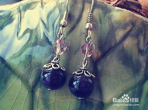 选了两颗较好的珠子,用银耳饰配件做了耳环,加了两颗淡紫水晶珠,提亮过暗的紫色
