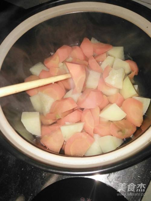 3放入砂锅里,加一碗水,中火煮软到筷子可以插入就可以关火了。