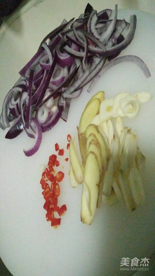 4辣椒切碎,姜蒜全部切片,洋葱切好待用