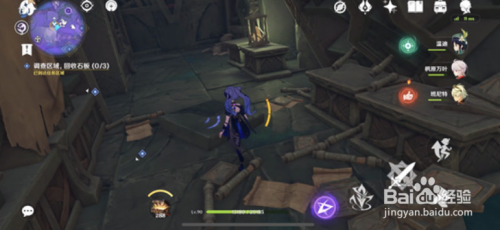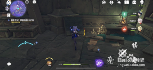 开启墙壁上的机关,前往上层寻找声音来源,可以看到镶嵌【石板】的机关,回到【矢部】位置与其对话,得到剩下石板的位置。