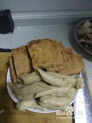 3、豆腐切大片,炸治两面金黄。待用