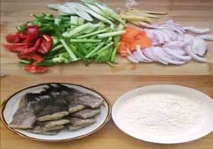 所有蔬菜洗净切丝备用,鱼尾洗净,吸干水分。