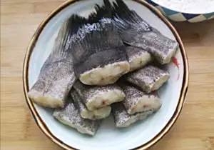 鱼尾裹上薄薄一层面粉,起锅热油,鱼尾入锅煎