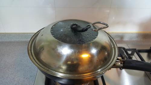 66、将蒸锅加水煮开后放入烤盘 隔水蒸45分钟+表面成熟,微微变色,不粘粉即可。