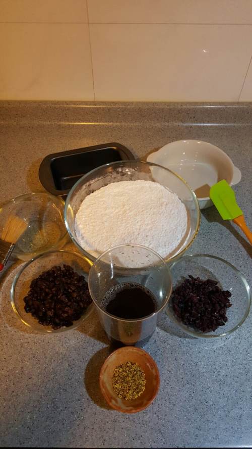 44、取1/3的混合米粉,加入蜜红豆(买的现成蜜红豆,也可以用煮熟的颗粒红豆+糖自制)蔓越莓干(适当切碎泡软)搅拌成 红豆糕粉。