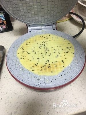 蛋卷机预热,加入一勺面糊一分半钟,刚开始不熟练可以等水汽干了之后打开看看,火不要太大会糊。