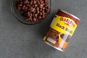 黑豆black beans我用的是罐装的已经煮熟的黑豆,打开后把罐头里的水过滤掉就直接能吃了,包装上写的是425克,但去水后豆子净重是220克;如果是干的生黑豆要先泡一晚,然后放进水里烧开后转小火慢煮2小时,或直至黑豆变软
