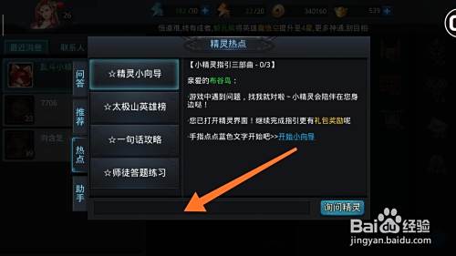 步骤4:游戏弹出“精灵热点”,最下面有个文本框,可以输入需要搜索的内容。