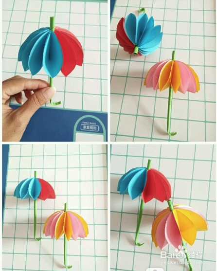 然后再把底下的柄掰弯一点,一款折纸雨伞就完成了。