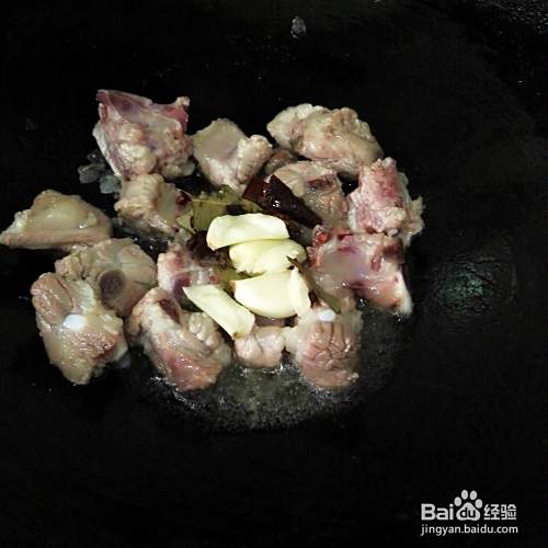 锅烧七成热放少量花生油,把冰糖放下去小火煎融化。再把排骨放下去中火翻炒片刻,炒至排骨颜色变成白色为止。