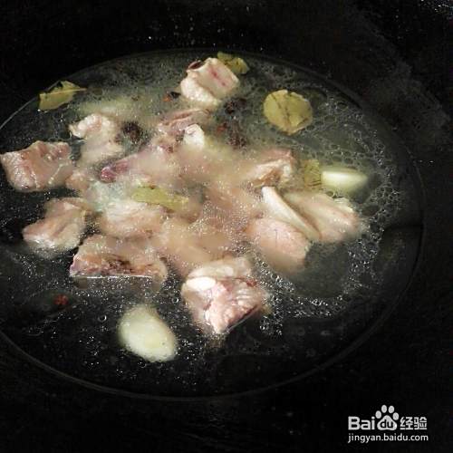 准备一点配料,大蒜籽去皮不切了,八角和香叶和陈皮洗一下都放在一起。