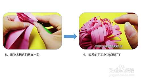用胶水把它们粘在一起,浪漫的手工小花就做好了。