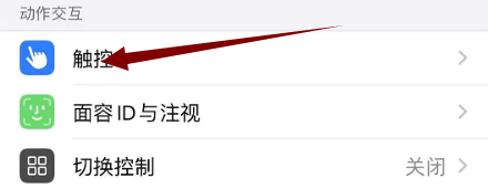 大家进入辅助功能后,向下滑动,第二个标题栏中第一个“触控选键”点击进入,如图所示。