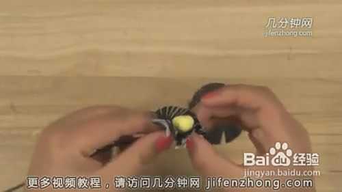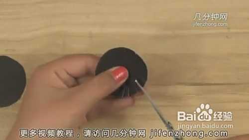 从黑色纸片上剪取2张小圆纸片,对小圆纸片外缘加以修饰,然后将金属丝从纸片中心穿过并紧贴“黄芽”。