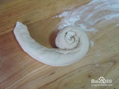 再向内盘起来成圆饼状