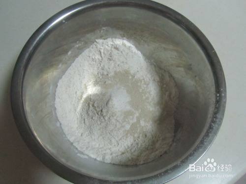 将富强粉和全麦面粉、发酵粉放入盆中