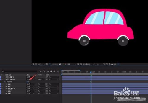 选择前轮、后轮2个图层,按R键,展开旋转属性, 在第一帧添加关键帧。