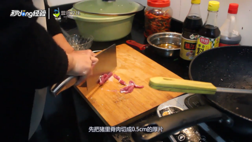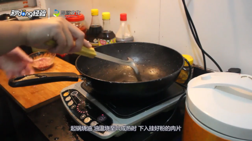 5油温升到六成热时下入肉片,炸至定型捞出。