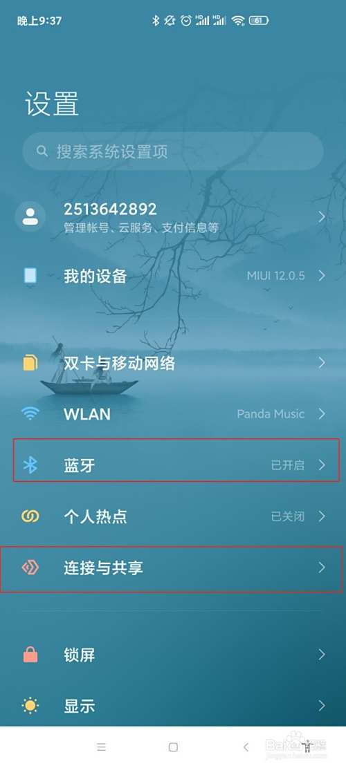 3、打开手机蓝牙,再点击【连接与共享】。