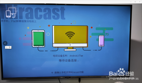 2、选择【爱投屏】,按确认键,按【安卓手机投屏】-【开始投屏】,进入待连接界面。